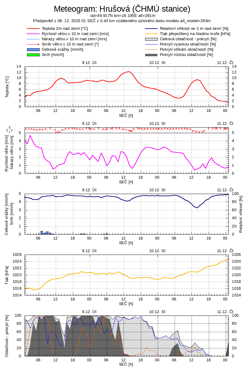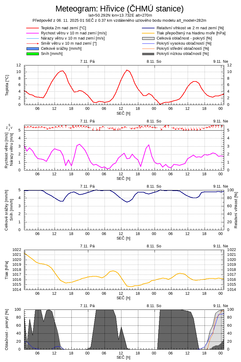 | Datum | Symbol | Teplota | Tlak | Srážky | Vitr |