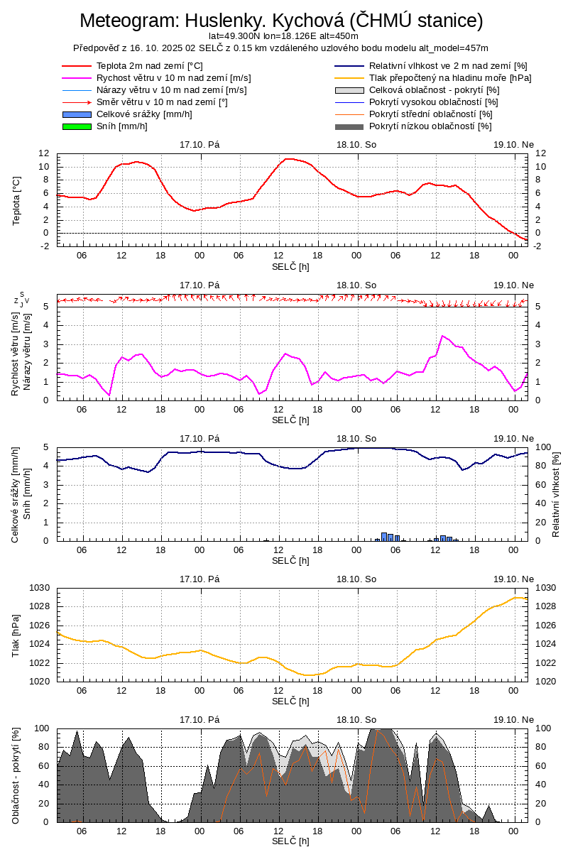 Legenda: | Oblačnost (%) | Srážky dešťové(mm/m2 za hod.) | Vítr (m/s) |