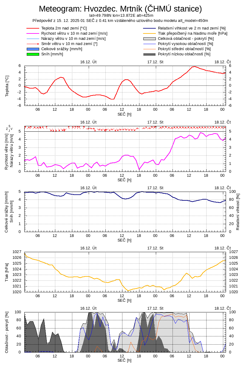 | Legenda: | Oblačnost (%) | Srážky dešťové(mm/m2 za hod.) | Vítr (m/s) |