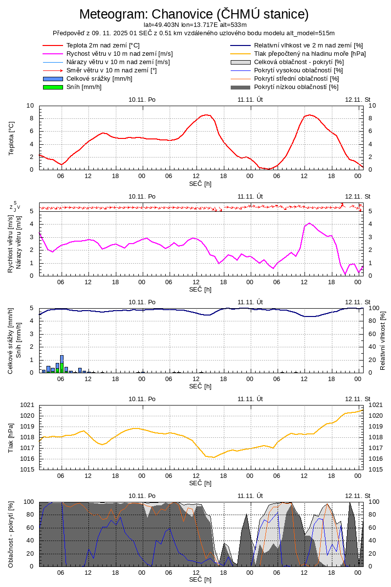 | Datum | Symbol | Teplota | Tlak | Srážky | Vitr |