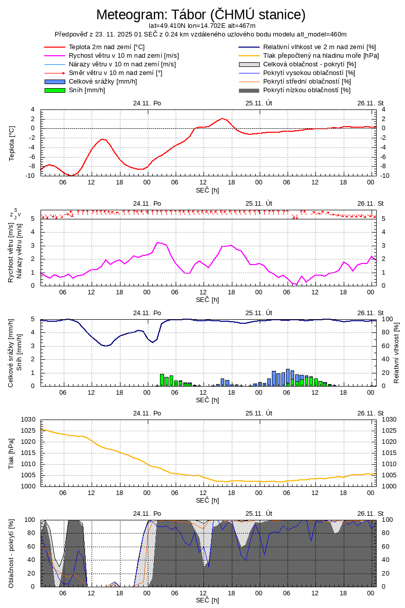 | Datum | Symbol | Teplota | Tlak | Srážky | Vitr |