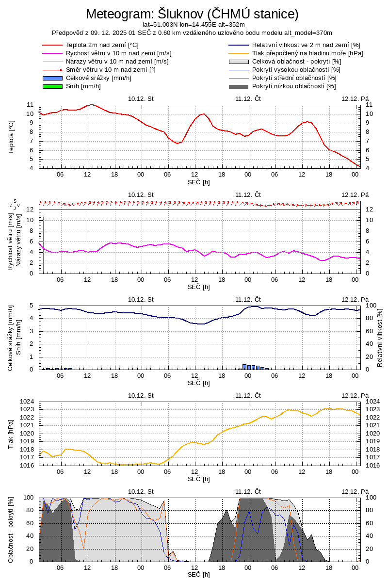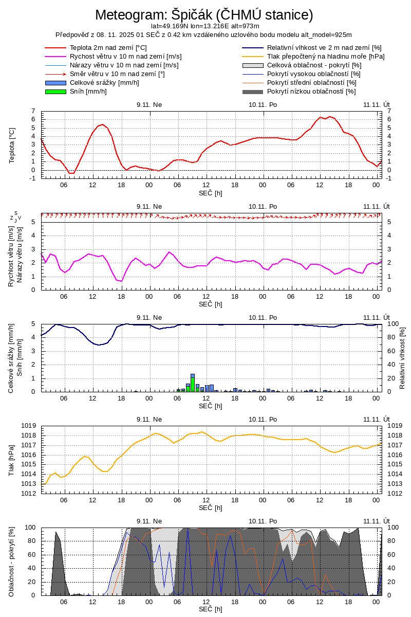 | Datum | Symbol | Teplota | Tlak | Srážky | Vitr |