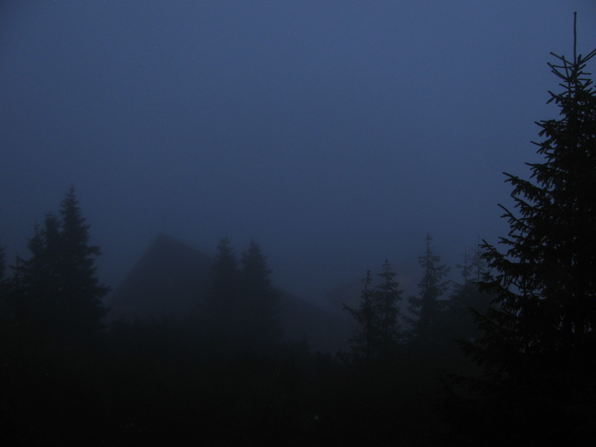 Pohled z webové kamery na Labské boudě. Zprava lze vidět vrchol Zlatého návrší, dále Medvědín a vlevo dobře patrná sjezdovka na Špindlerův Mlýn - Stoh.
