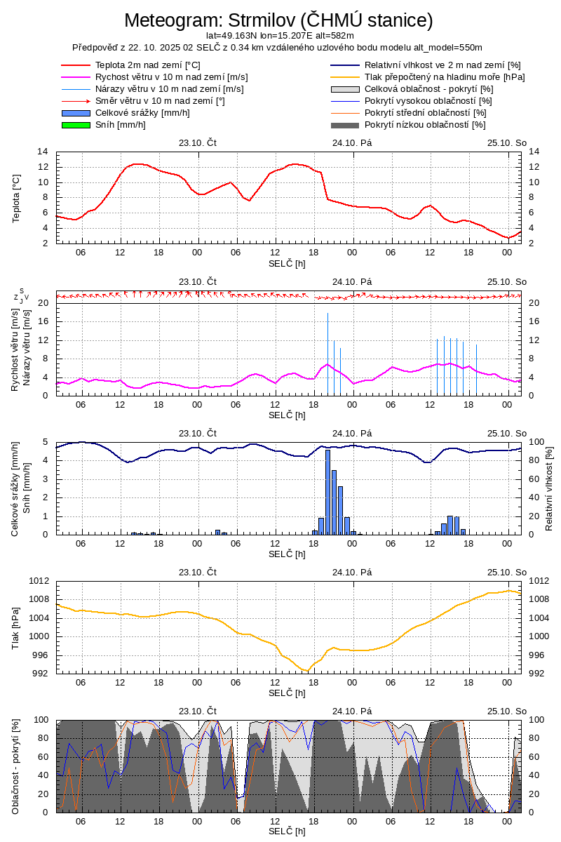 Legenda: | Oblačnost (%) | Srážky dešťové(mm/m2 za hod.) | Vítr (m/s) |