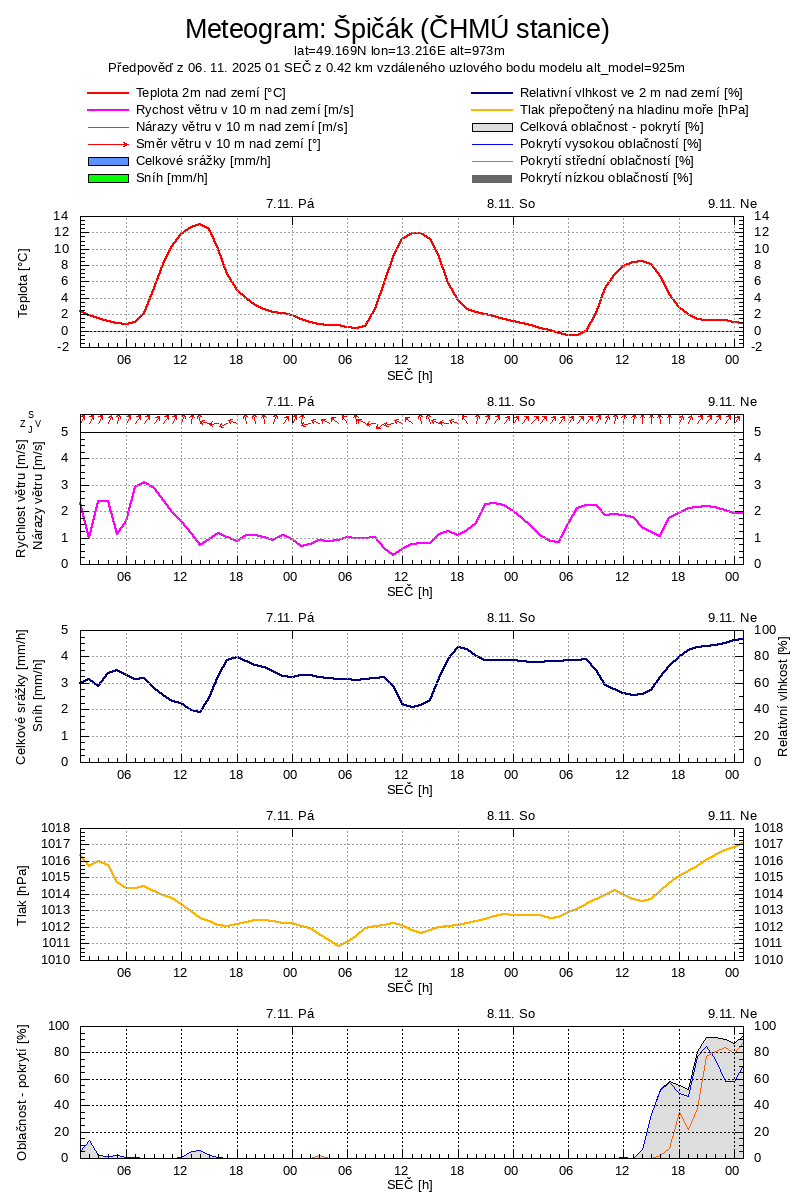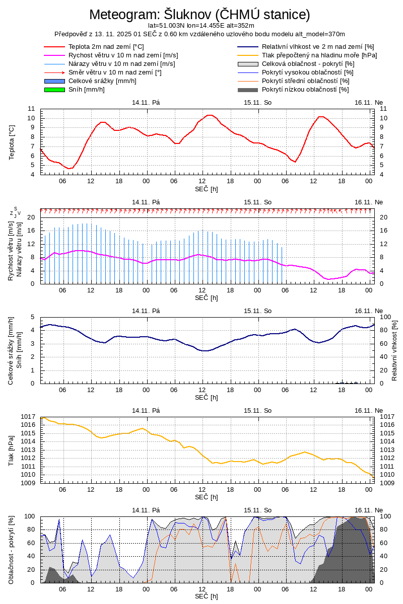 | Datum | Symbol | Teplota | Tlak | Srážky | Vitr |